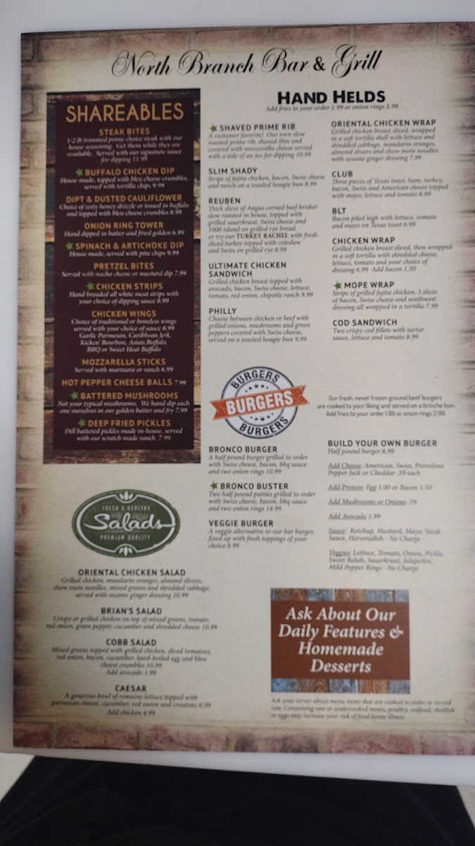 North Branch Bar & Grill Menu feels like the kind of place you discover once and keep coming back to. Tucked away at 4029 Huron St in North Branch, MI, it offers a lineup of hearty comfort food with a local twist. You’ll find burgers stacked tall with fresh toppings, crispy appetizers that are perfect for sharing, and classic entrées that hit the spot after a long day. The kitchen doesn’t get fancy just for the sake of it - instead, every plate leans into reliable flavors that make you feel at home.